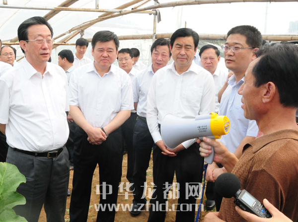 圖為省長郭庚茂一行在市領(lǐng)導(dǎo)徐光、岳文海的陪同下到西華縣調(diào)研。(記者李寒?dāng)z)