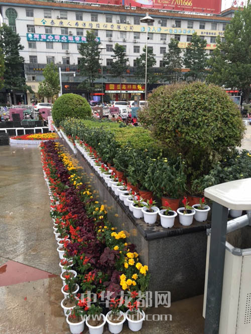 周口公園門前擺放的大型花壇