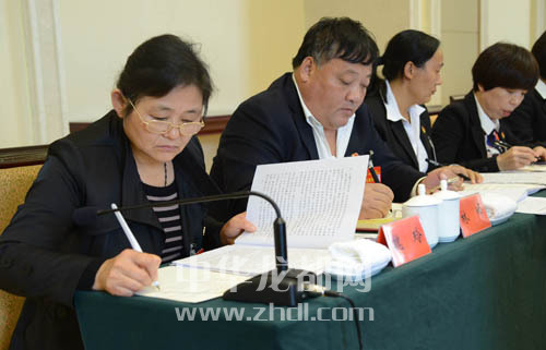 ????出席省十次黨代會的我市代表認真討論省委工作報告。記者 王映 攝
