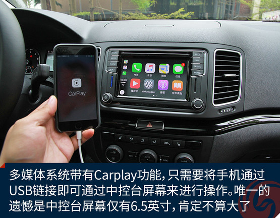 內(nèi)飾方面,夏朗仍然傳承著大眾品牌的經(jīng)典設(shè)計(jì)風(fēng)格,基本不用分辨就知道這是一款大眾汽車。中央的多媒體系統(tǒng)功能豐富,并且?guī)в蠧arplay功能,只需要將手機(jī)通過USB鏈接即可通過中控臺(tái)屏幕來進(jìn)行操作。唯一的遺憾是,夏朗的中控臺(tái)屏幕僅有6.5英寸,在現(xiàn)在看來肯定不算大了。