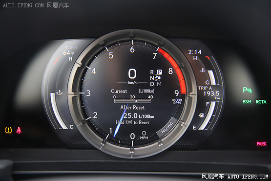 全液晶儀表盤繼承了超級跑車LFA的樣式,中間的金屬物理圓環(huán)可以向右側(cè)移動(dòng),從何使左側(cè)顯示更多的車輛信息。論炫酷程度,這塊液晶儀表絕對是所有品牌最棒的,不過實(shí)用度差了點(diǎn),不如奧迪的液晶儀表。
