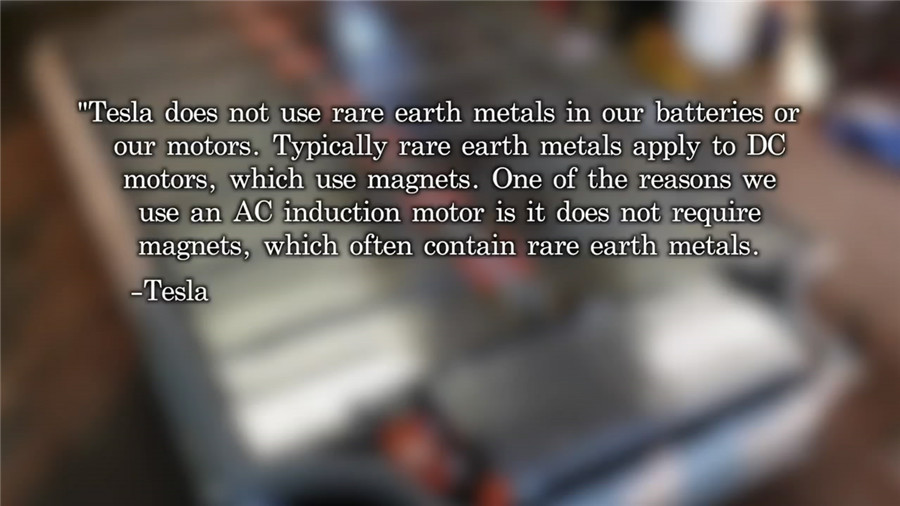 ????????視頻最后還討論了關(guān)于電動車中使用到的稀土資源,以及電池的后期回收問題。特斯拉使用了交流感應電機而非直流電機的原因就是為了少使用稀有的稀土。