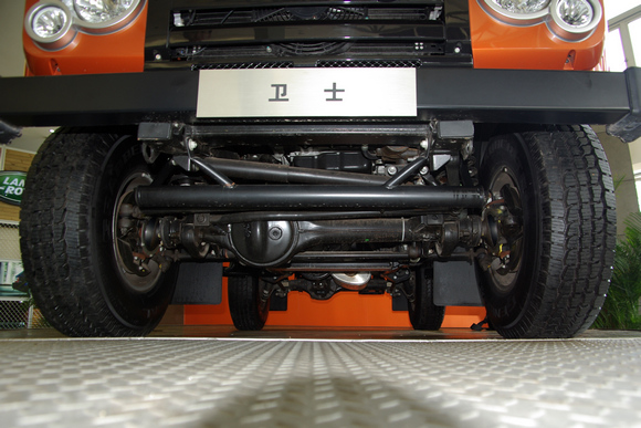 ????路虎衛(wèi)士賴以生存的是其硬派的機(jī)械本性,其非承載式的大梁及前后硬軸,以及帶低速檔的分動(dòng)箱,都是衛(wèi)士野外生存適應(yīng)能力的保證。