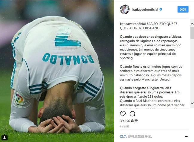本賽季的C羅,狀態(tài)跌至谷底,門前缺乏進球,越來越多的球迷開始批評C羅。C羅的姐姐卡蒂婭-阿韋羅在社交媒體上力挺C羅,她寫了一大段話鼓勵C羅。