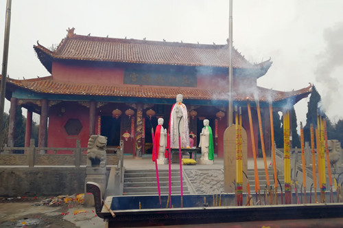 站在殿內(nèi)祭拜的“善童”(民間稱呼,即虔誠的香客)張新蘭以她的親身經(jīng)歷印證了趙俊明的話。今年75歲的張新蘭是西華縣紅花鎮(zhèn)人,她經(jīng)常到昆山女媧宮敬奉女媧娘娘。“我記得很清楚,1993年陰歷三月初九昆山女媧宮大殿奠基,當(dāng)天我就在現(xiàn)場,我們這些‘善童’都自發(fā)捐物捐錢,我還從家里拿木料過來捐到殿里?!睆埿绿m說。