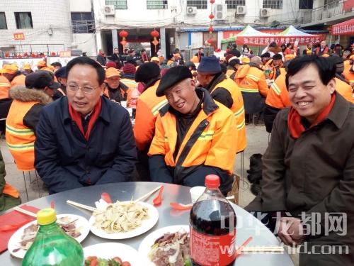 中華龍都網(wǎng)訊(周口報業(yè)全媒體記者 馬治衛(wèi))2月14日上午,太康縣“溫暖環(huán)衛(wèi)工團團圓圓過大年”大型公益活動隆重舉行。市政府副市長、市黨外知識分子聯(lián)誼會會長張廣東應(yīng)邀出席并與環(huán)衛(wèi)工一起共進午餐。