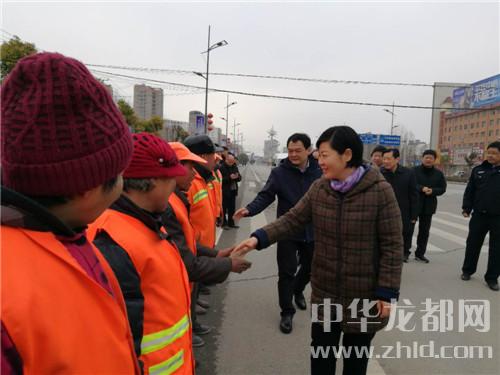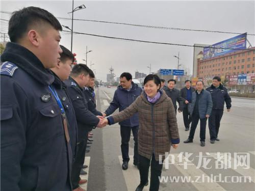 在鄲城縣城新華路與迎賓大道路口,羅文閣、李全林和一線值勤的環(huán)衛(wèi)工人、城管隊員一一握手,深切關心環(huán)衛(wèi)工人和城管隊員的冷暖?!翱词侄鄾觯┖顸c兒呀。大年三十了,你們放棄和家人團圓吃餃子的機會,在為我們的縣城保潔,我們城市的清潔有賴于你們。你們辛苦了,給你們拜個年,祝你們身體健康。”羅文閣向環(huán)衛(wèi)工人遞上慰問金時,樸實的話語、殷殷的關懷把黨的溫暖涌向環(huán)衛(wèi)工人的心窩兒。“不辛苦,領導來看俺,俺里比吃餃子暖和?!杯h(huán)衛(wèi)工人邊鼓掌邊道出了內(nèi)心的激動。