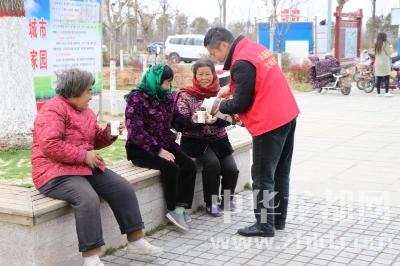 細(xì)心的志愿者們還為健身、散步、游玩的市民準(zhǔn)備了開水和杯子,為他們驅(qū)走寒意、溫暖雙手、滋潤(rùn)心田?!鞍澈涸诩乙矝](méi)想著給我倒杯水喝啊,恁還大老遠(yuǎn)給我送來(lái)!”接過(guò)志愿者手中的開水,一位老人十分激動(dòng)。