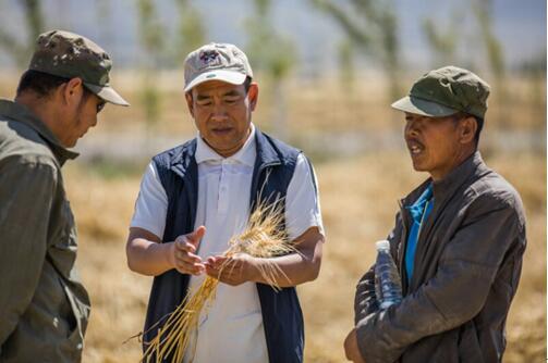 2017年9月是新疆哈密的小麥?zhǔn)崭罴荆珖?guó)人大代表、治土人黨永富在田間考察化肥減量、農(nóng)業(yè)提質(zhì)的實(shí)際效果。