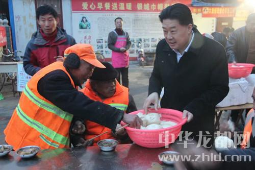 中華龍都網(wǎng)訊(周口報(bào)業(yè)全媒體記者 馬治衛(wèi) 通訊員 徐孫楊)3月20日早,新疆河南總商會(huì)會(huì)長(zhǎng)朱軍一行從新疆專程趕往太康,為該縣“愛心早餐”工程捐款10萬元,并親自為環(huán)衛(wèi)工人端菜送饅頭,并向志愿者和環(huán)衛(wèi)工致以親切地慰問。