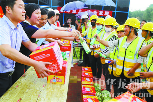中華龍都網(wǎng)訊(周口報(bào)業(yè)全媒體記者 張勁松 蘇千 文/圖)“各級領(lǐng)導(dǎo)沒有忘記我們這些高溫下作業(yè)的農(nóng)民工,不僅對我們進(jìn)行了安全知識培訓(xùn),還給我們送來了慰問品,我非常感謝他們?!鞭r(nóng)民工朱紅軍捧著香皂、花露水等防暑降溫用品,高興不已。