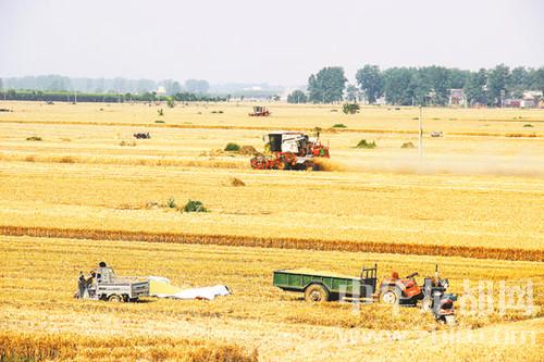 現(xiàn)在我市麥?zhǔn)找呀猜暋J斋@時(shí),縱橫交錯(cuò)的麥田一片金黃,把鄉(xiāng)村裝點(diǎn)得格外美麗。收割機(jī)在麥田中穿梭,陣風(fēng)吹過,麥浪隨風(fēng)起舞,猶如一幅田園畫卷。呂耀光 攝