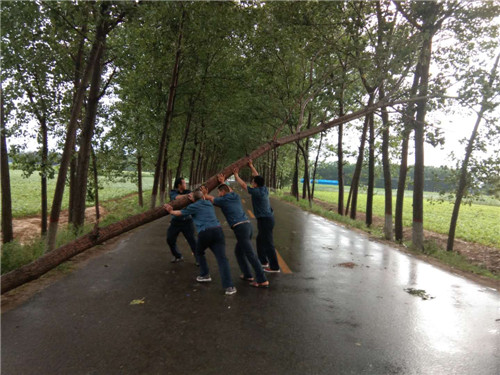在東夏看張立交橋、李莊橋處,多棵行道樹(shù)被大風(fēng)刮倒,大量枝掉落在公路上,嚴(yán)重危及行車(chē)安全和道路通行,執(zhí)法人員立即冒雨采取安全防護(hù)措施,并利用車(chē)載應(yīng)急搶險(xiǎn)工具將倒塌在公路上直徑為10-20cm的樹(shù)木進(jìn)行及時(shí)清理,并對(duì)殘枝落葉進(jìn)行了全面清掃。歷時(shí)三個(gè)小時(shí),及時(shí)地消除了道路安全隱患,保障人民群眾的出行安全。