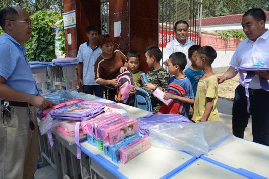 “我們這個小學是建校幾十年的老學校,很多桌凳都很破舊了。這不,剛剛開學,村里幫 扶企業(yè)就給俺送來了課桌凳、書包文具,電腦桌、檔案柜,現(xiàn)在國家扶貧政策就是好。你 看,這些學生都很高興,我們學生雖然不多一定要用心教學,以實際行動報答社會的關愛 ......”校長任海峰感激之情溢于言表。