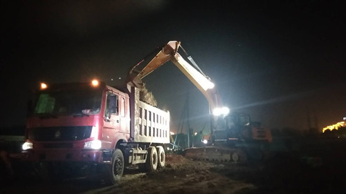 當(dāng)晚22時(shí)半許,記者在引黃調(diào)蓄施工現(xiàn)場看到,200余輛工程機(jī)械緊張作業(yè),挖掘機(jī)、推土機(jī)的轟鳴聲震耳欲聾,渣土車來回穿梭,各種施工機(jī)械加足馬力緊張有序地進(jìn)行作業(yè),120余名工人披星戴月堅(jiān)守崗位,加班加點(diǎn)奮戰(zhàn)在施工一線,現(xiàn)場到處一片緊張繁忙的施工景象。