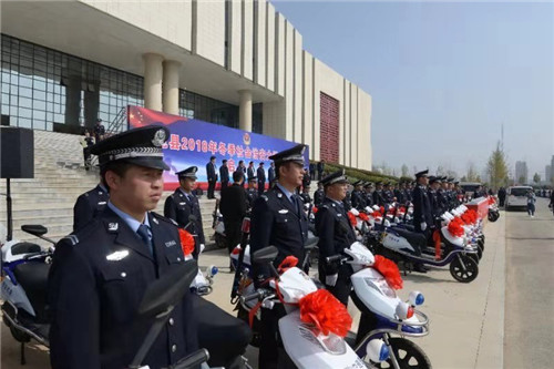 儀式上,縣領(lǐng)導(dǎo)為“百警駐百村”民警代表發(fā)放了第三批巡邏電動(dòng)車(chē)、臺(tái)式電腦、平板電腦等 “一村一警”警務(wù)裝備。儀式結(jié)束后,隨著梁建松一聲令下,公安民警統(tǒng)一登車(chē),駛向大街小巷,開(kāi)展第集中大巡邏。