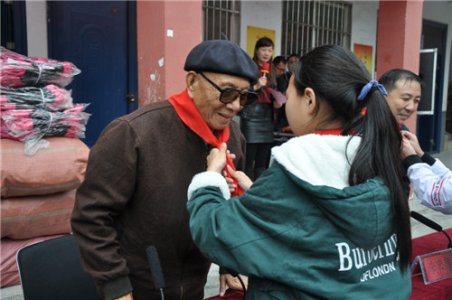 瑟瑟寒風(fēng)抵擋不住火熱愛心,毛毛細(xì)雨阻擋不了赤子情懷。愛心助學(xué)現(xiàn)場(chǎng),于學(xué)龍不顧高齡,除了給孩子們送去愛心禮物之外,還站在雨中分享了自己的成長(zhǎng)經(jīng)歷,教育孩子們要學(xué)會(huì)刻苦、學(xué)會(huì)拼搏,還要懂得感恩和奉獻(xiàn)。