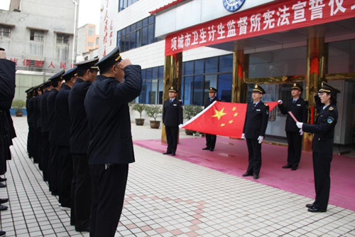 12月4日在我國第五個國家憲法日來臨之際,項城市衛(wèi)生計生監(jiān)督所舉行憲法宣誓儀式,旨在引導(dǎo)全體衛(wèi)生計生監(jiān)督人員牢固樹立憲法至上意識,增強憲法觀念,自覺維護(hù)憲法尊嚴(yán)。