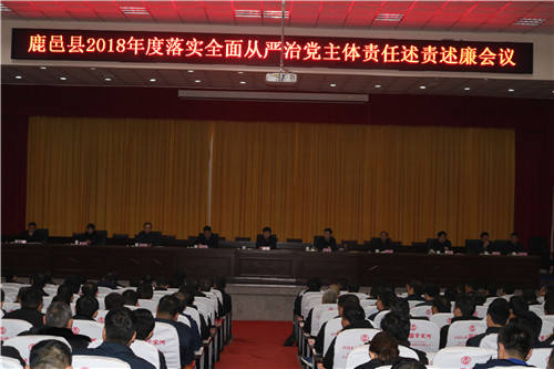1月4日上午,鹿邑縣2018年度落實(shí)全面從嚴(yán)治黨主體責(zé)任述責(zé)述廉會(huì)議在縣委黨校一樓報(bào)告廳召開(kāi)。縣委書(shū)記梁建松出席會(huì)議并講話??h委常委、紀(jì)委監(jiān)察委主任韓林主持會(huì)議。縣直各局委主要負(fù)責(zé)人、派駐紀(jì)檢組、巡查辦主要負(fù)責(zé)人以及各鄉(xiāng)鎮(zhèn)辦事處黨(工)委書(shū)記、紀(jì)檢書(shū)記參加會(huì)議。