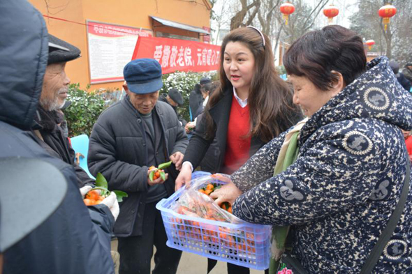 據(jù)了解,此次開展“愛灑敬老院、元宵暖心田”公益活動(dòng)的發(fā)起人,是剛剛獲得商水縣“道德模范”的愛心人士劉玉英。劉玉英是一名中共黨員,她早年外出務(wù)工,近幾年返鄉(xiāng)后任職某保險(xiǎn)公司。經(jīng)常關(guān)愛留守兒童和老人、對(duì)親戚鄰居慷慨相助,她還加入了“周口義工”團(tuán)隊(duì),踴躍參加當(dāng)?shù)亍笆∵\(yùn)會(huì)”“殘運(yùn)會(huì)”義務(wù)服務(wù)活動(dòng)?!耙粋€(gè)人的愛心是有限的,這次自愿報(bào)名參加人員都是愛心企業(yè)家,盡管他們工作都很忙,一聽說要去敬老院給老人送元宵都親自來了?!眲⒂裼⒔榻B說,“我們帶來了精心挑選的6件黑芝麻水果元宵、4件蘋果、4件砂糖橘、2件柚子、4件香蕉、2件雪梨,還有市區(qū)‘亨達(dá)果品’水果店老板獻(xiàn)愛心捐贈(zèng)的一箱西瓜,盡管這些東西價(jià)值只有1000多元,但畢竟是大家的一片心意!”