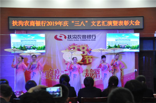 3月7日晚,扶溝農商銀行舉行慶“三八”文藝匯演暨表彰大會,以充分發(fā)揮優(yōu)秀女員工的示范帶動作用,激勵全行女員工立足本職,愛崗敬業(yè),開拓進取。