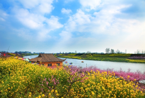 每年3月底至4月上旬,西華潁河兩岸萬(wàn)畝桃花競(jìng)相開(kāi)放,樹(shù)下金燦燦的油菜花、綠油油的麥苗相映成趣,紅、黃、綠構(gòu)成了五彩繽紛的人間仙境,置身其中,花香沁人心脾,色彩絢麗奪目,景色美不勝收,恍如身處陶淵明筆下的“世外桃源”。