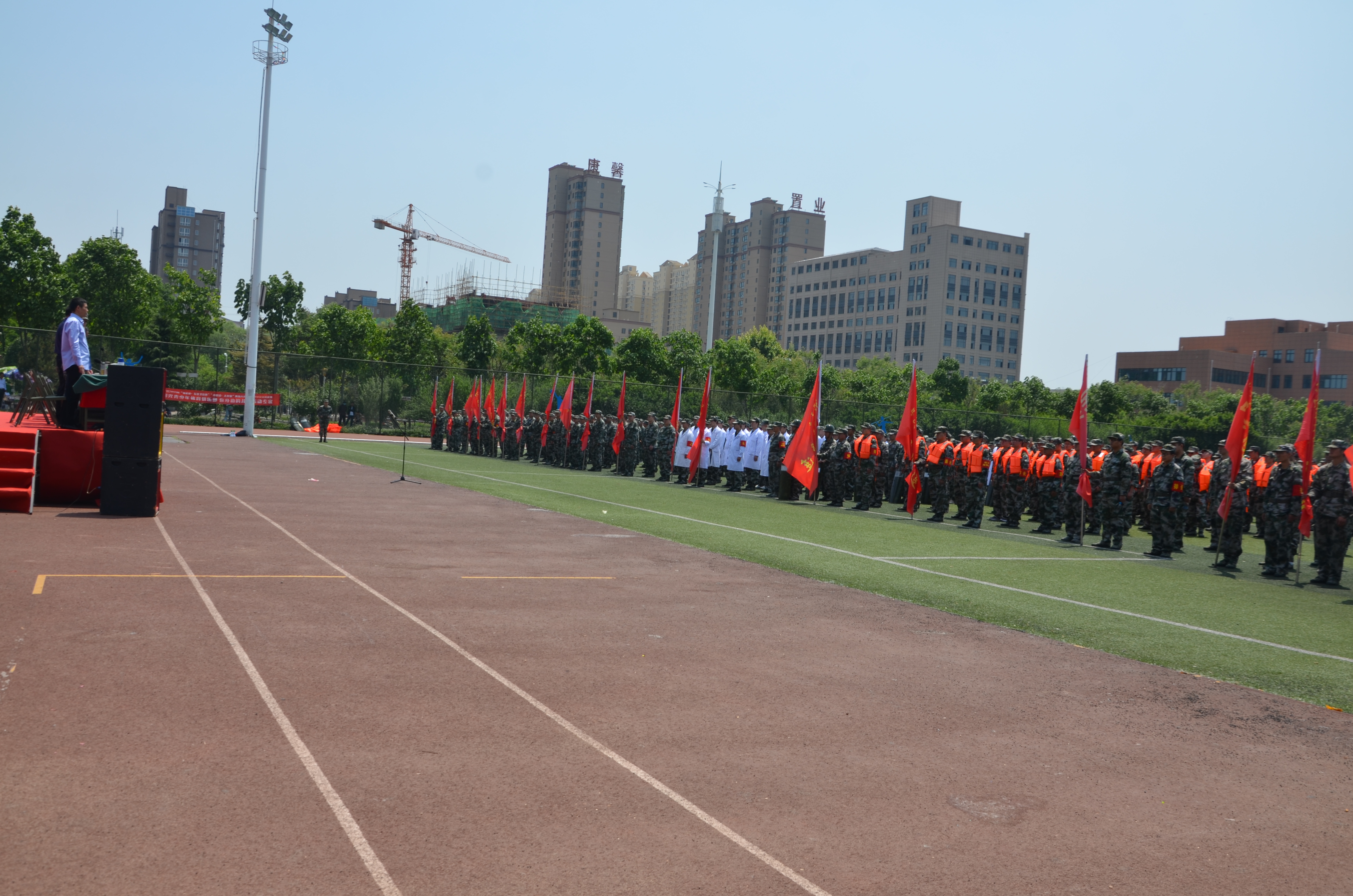 5月10日上午,沈丘縣體育場(chǎng)上紅旗招展、隊(duì)列整齊,民兵同志全副武裝、精神抖擻。綜合應(yīng)急分隊(duì)、防汛抗洪分隊(duì)、應(yīng)急防爆分隊(duì)、醫(yī)療救護(hù)分隊(duì)和22個(gè)鄉(xiāng)鎮(zhèn)民兵應(yīng)急排近千名基干民兵參加了沈丘縣2019年基干民兵集中點(diǎn)驗(yàn)暨開(kāi)訓(xùn)動(dòng)員大會(huì)。
