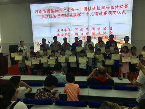 活動中,來自我市各地的百余名圍棋小選手們齊聚一堂,切磋棋藝,以特殊的方式慶祝六一兒童節(jié)。省圍棋協(xié)會向周口經(jīng)濟(jì)開發(fā)區(qū)實驗學(xué)校捐贈了小學(xué)生圍棋教材、圍棋題集等圍棋書籍和器具。