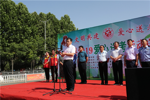 六月麥?zhǔn)焓锵?,?ài)心送考又起航。6月4日上午,由太康縣委宣傳部、縣文明辦主辦,縣委網(wǎng)信辦、縣城管局、縣住建局、縣教體局、縣公安局、縣文廣旅局承辦的“文明共建 愛(ài)心送考”公益活動(dòng)正式啟動(dòng)??h委常委、宣傳部長(zhǎng)謝成營(yíng)出席活動(dòng)并講話。