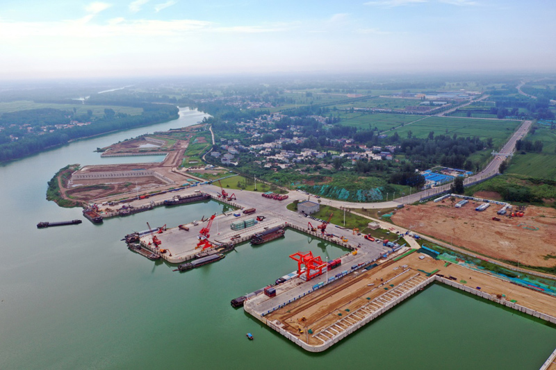近年來(lái),河南省周口市依托地理優(yōu)勢(shì),推進(jìn)沙潁河航道升級(jí)改造工程,疏通內(nèi)河航運(yùn),以港口多式聯(lián)運(yùn)建設(shè)為切入點(diǎn),大力發(fā)展臨港經(jīng)濟(jì)。從周口中心港出發(fā)的船舶可經(jīng)沙潁河至淮河、京杭大運(yùn)河進(jìn)而駛?cè)腴L(zhǎng)江,實(shí)現(xiàn)了內(nèi)陸城市的商品貨物通江達(dá)海。