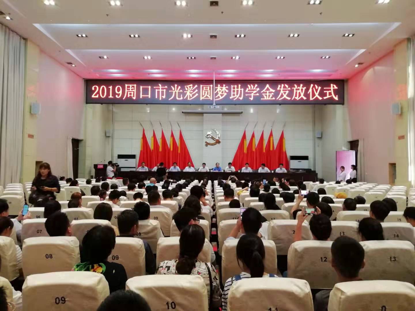 8月30日上午,2019年周口市“光彩圓夢”助學(xué)金發(fā)放儀式在川匯區(qū)舉行。市政協(xié)副主席、市工商聯(lián)主席趙萬俊,老領(lǐng)導(dǎo)李紹彬、白明寬,市委統(tǒng)戰(zhàn)部副部長、市工商聯(lián)黨組書記李飛,川匯區(qū)區(qū)委書記李宗喜,市工商聯(lián)副主席、周口市商會(huì)黨委書記徐公俊,市扶貧辦副主任程衛(wèi)東,川匯區(qū)區(qū)委常委、統(tǒng)戰(zhàn)部長宋煜及市直、區(qū)直有關(guān)單位負(fù)責(zé)同志出席儀式。
