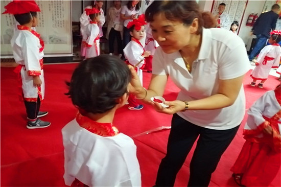 老師為孩子們“朱砂開智”。