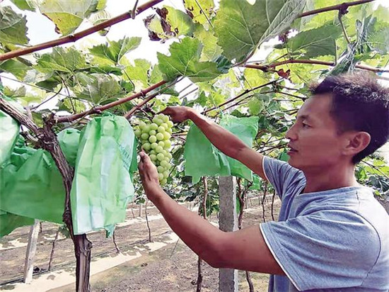 在楊樓村,轉(zhuǎn)業(yè)返鄉(xiāng)的李玉柱在土地上也做出了大文章。李玉柱在部隊(duì)服役15年,本可按政策安排工作。但是,他有著強(qiáng)烈的創(chuàng)業(yè)熱情。三年前,在鄉(xiāng)村兩級組織的支持下,他租用村集體土地,投入100多萬元搞葡萄種植。目前,葡萄進(jìn)入豐產(chǎn)期,李玉柱每年都可實(shí)現(xiàn)收入20多萬元。