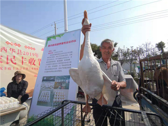 上午10時許,記者在現(xiàn)場看到,這邊廣場舞大賽舉辦正酣,那邊農(nóng)產(chǎn)品展臺人頭攢動?!斑?,家里養(yǎng)的大鵝也來‘參會’了,你看多有意思?!痹陴B(yǎng)殖區(qū)展臺前,前去參觀的一群婦女開心地說。村民趙大姐說,豐收節(jié)真是農(nóng)民自己的節(jié)日,誰能想到家里的大鵝也能成為“稀罕物”,擺到展臺前了?旁邊的養(yǎng)殖合作社負責人接過話茬:“你可別小看這大鵝,一年給俺帶來幾百萬元收入呢。”