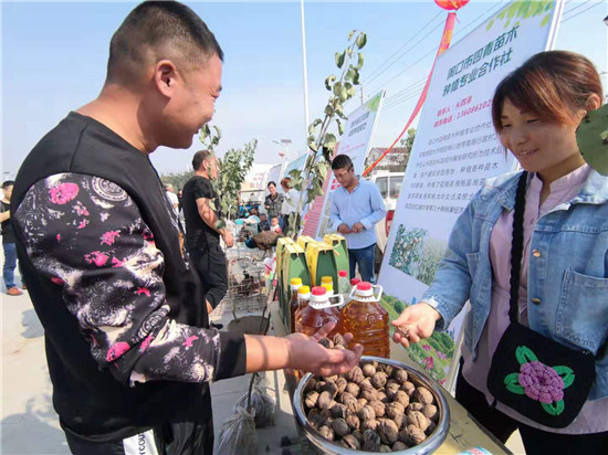 一問一答間,爽朗的笑聲響徹節(jié)日上空,農(nóng)民們喜笑顏開,傳遞出濃濃的幸福。大棗、黑木耳、小麥粉、粉條等西華縣各具特色的農(nóng)產(chǎn)品紛紛亮相,除了展示各自的“增收實力”,也展示出幾年來發(fā)展農(nóng)業(yè)特色經(jīng)濟的豐碩成果?!罢钆_,農(nóng)民唱戲,每年一度的農(nóng)民豐收節(jié)既是農(nóng)民歡樂的節(jié)日,也是展銷農(nóng)產(chǎn)品的紐帶平臺,今天我們奉母鎮(zhèn)展示了本地原生態(tài)粉條和純糧美酒,希望借助豐收節(jié)機遇,拓寬銷路實現(xiàn)農(nóng)民增收?!蔽魅A縣奉母鎮(zhèn)黨委書記陳鵬告訴記者。