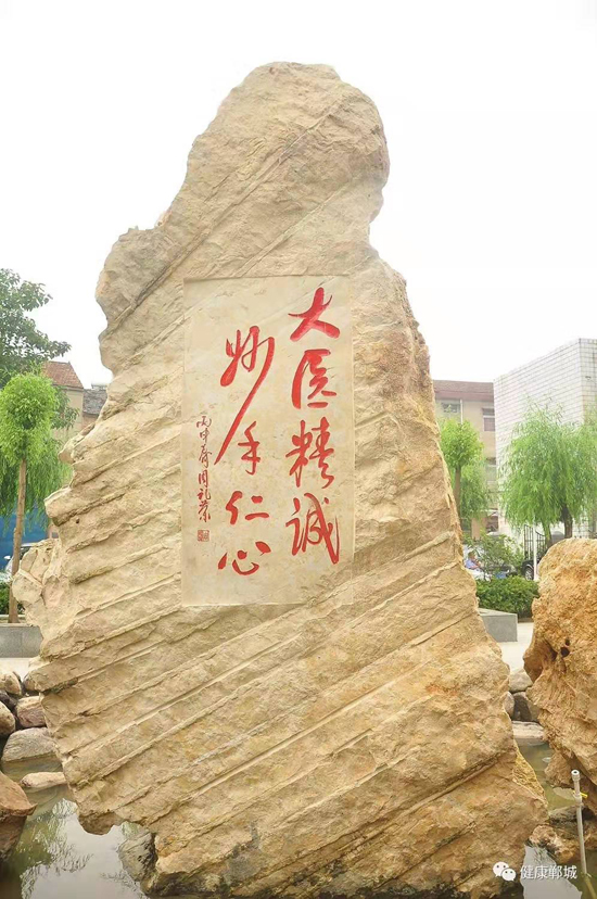 他雖然離開了鄲城,但一直關(guān)注著醫(yī)院的發(fā)展。醫(yī)院領(lǐng)導也多次到上海看望他,向他匯報醫(yī)院近年來的發(fā)展情況。2016年,鄲城縣人民醫(yī)院院長于健到上??赐?,聽到醫(yī)院近年來快速健康的發(fā)展進程,周老先生非常高興,欣然提筆寫下“大醫(yī)精誠,妙手仁心”八個大字。周老先生的題詞被雕刻在一尊文化石上,座落在醫(yī)院文化廣場上。