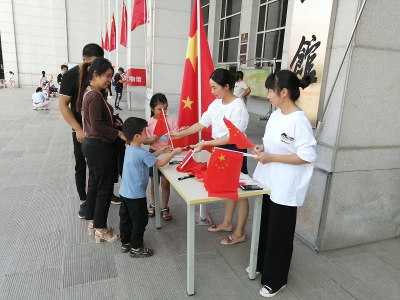 活動(dòng)期間,市博物館工作人員共為市民發(fā)放小紅旗1000面。