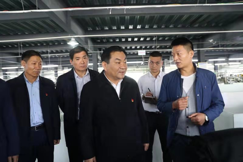 王國璽一行先后到茉莉紡織、忠原襪業(yè)、萬利源棉業(yè)有限公司、河南歐企德服飾有限公司工商住教綜合項(xiàng)目工地等地進(jìn)行調(diào)研。調(diào)研中,王國璽遇見從江西上饒前來打工的年過六旬的周孝親老人。王國璽詳細(xì)詢問了周孝親工作情況、工資收入和家庭情況,對(duì)他發(fā)揮余熱的積極舉動(dòng)表示贊賞。在忠原襪業(yè),來自老冢鎮(zhèn)干張行政村的呂老太正熟練地加工襪子。王國璽與呂老太親切交談,叮囑她在勞動(dòng)中要注意身體,對(duì)她積極的就業(yè)態(tài)度表示肯定。王國璽每到一處,實(shí)地查看企業(yè)生產(chǎn)情況后,向企業(yè)負(fù)責(zé)人詳細(xì)了解企業(yè)運(yùn)行情況,詢問企業(yè)生產(chǎn)中遇到的問題,要求相關(guān)部門發(fā)揮職能作用為企業(yè)解難。