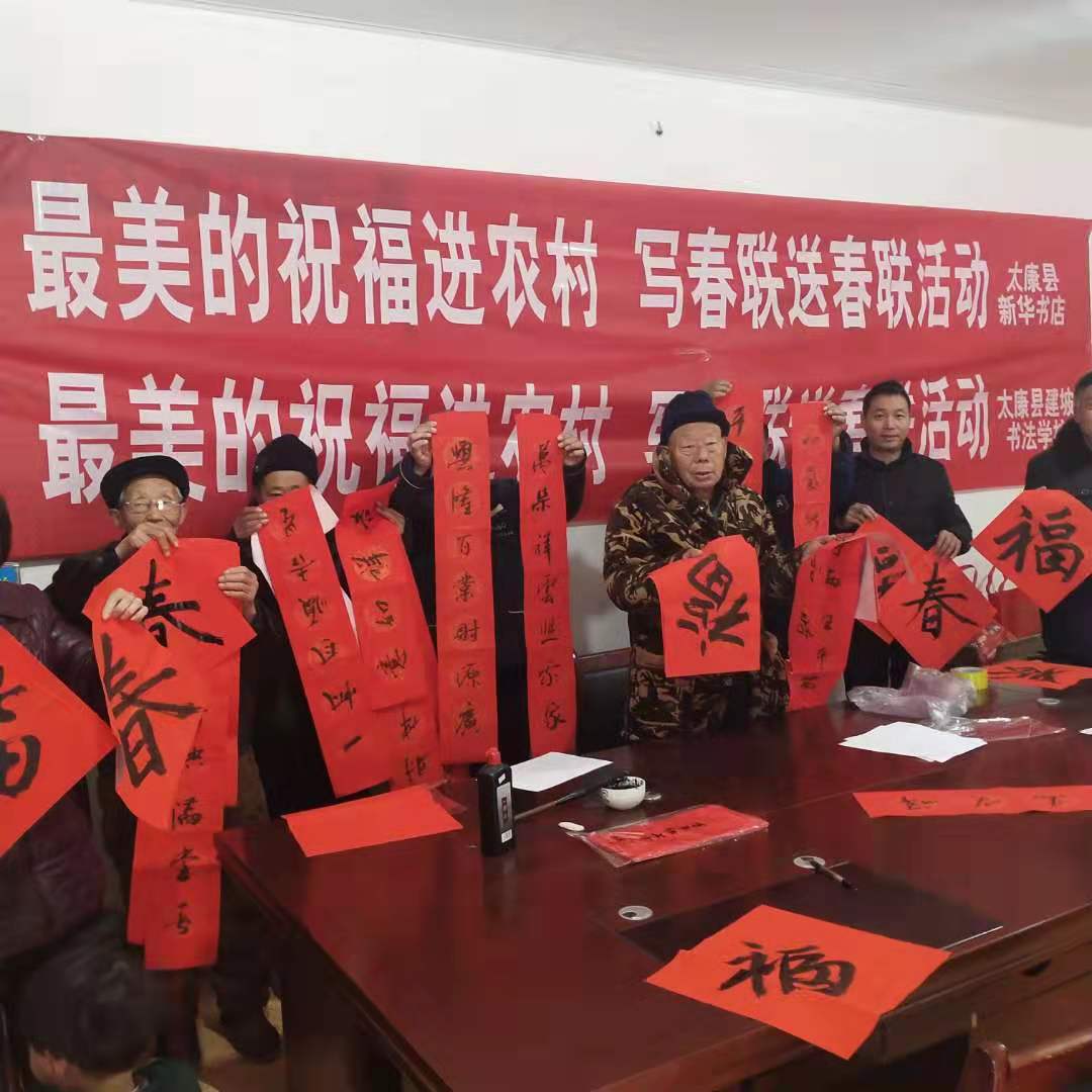 瀟灑的筆法、濃醇的墨香、歡樂(lè)的笑臉、熱鬧的場(chǎng)景,襯托著鼠年的喜慶。1月21日,由太康縣新華書(shū)店有限公司舉辦的“ 最美的祝?!边M(jìn)農(nóng)村寫(xiě)春聯(lián)、送春聯(lián)活動(dòng)走進(jìn)太康縣王集鄉(xiāng)葛崗行政村,多名書(shū)法家現(xiàn)場(chǎng)揮毫潑墨,為群眾免費(fèi)寫(xiě)春聯(lián)送祝福。