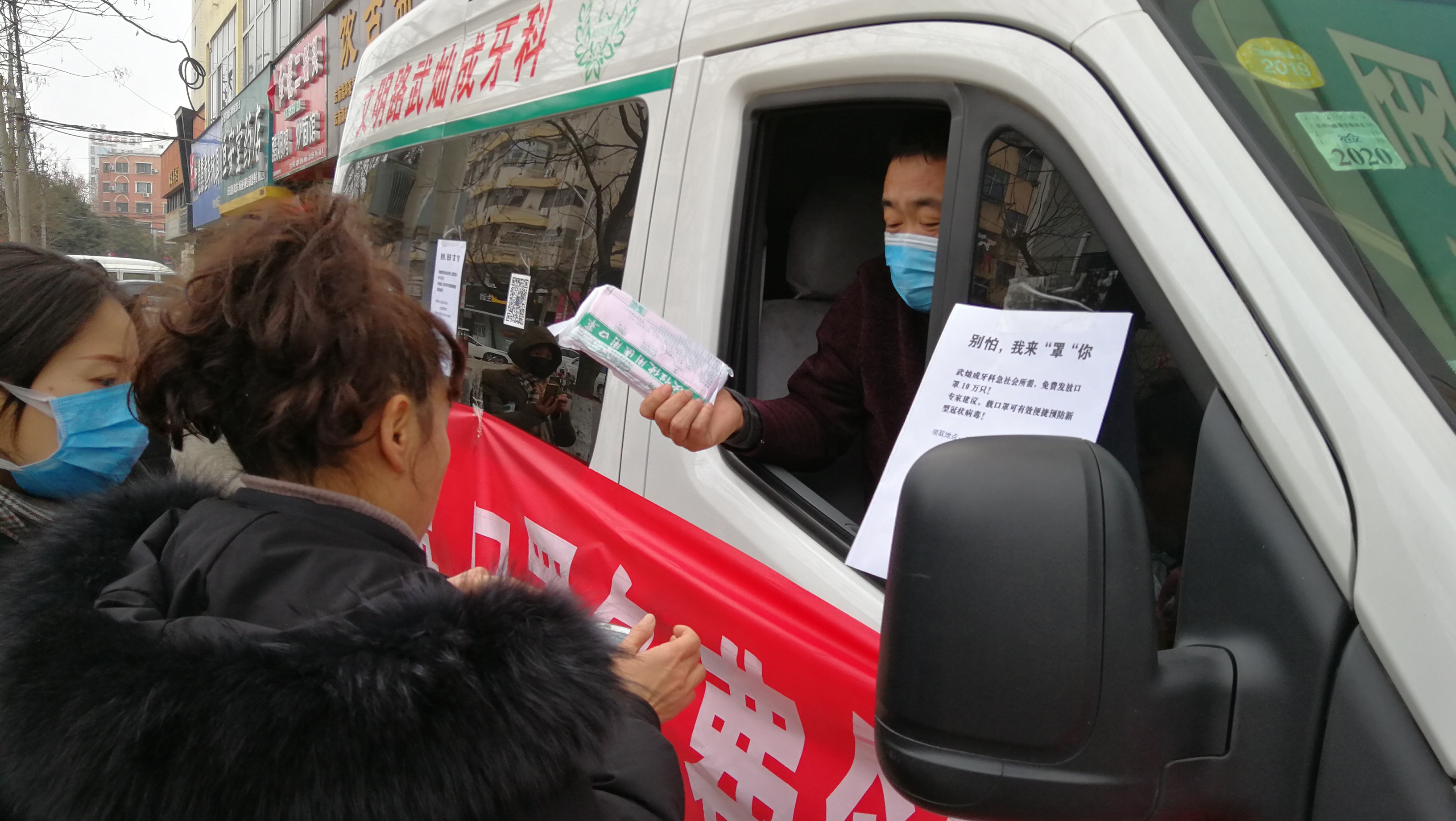 為應(yīng)對新型冠狀病毒肺炎和流感季,1月23日,文明路中段一家診所特采購了十萬只一次性使用醫(yī)用口罩,免費(fèi)發(fā)放給過路市民,受到人們的交口稱贊。記者 王映 攝