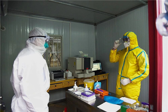 醫(yī)院在附近賓館租用25個單間,用于一線醫(yī)務人員臨時休息,醫(yī)務人員換班時由專車接送,吃飯由專人派送,確保任何一個環(huán)節(jié)都不會發(fā)生意外感染。 于健、高飛深入隔離區(qū)慰問值班醫(yī)務人員,對他們舍小家、顧大家,為防疫工作大局、為更多群眾的生命與健康付出的辛苦努力,表示衷心的感謝。