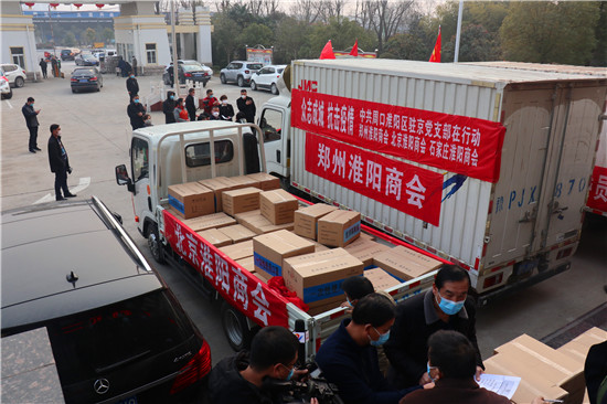 2月4日,隨著一輛輛裝滿物資的汽車緩緩駛?cè)胫芸?,周口市淮陽區(qū)駐外流動(dòng)黨員黨支部的一場捐款捐物活動(dòng)如期進(jìn)行。