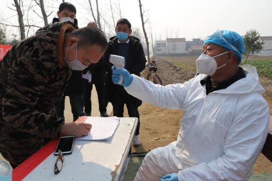 起初,苑統(tǒng)俊配合村干部在村里宣傳疫情防控政策、方法,1月25日,我省啟動一級應(yīng)急響應(yīng),港區(qū)迅速做出響應(yīng),在轄區(qū)內(nèi)各個村莊社區(qū)設(shè)置疫情監(jiān)控點(diǎn),限制人員流動,全天候監(jiān)測進(jìn)出人員身體狀態(tài)。苑統(tǒng)俊擔(dān)起監(jiān)控點(diǎn)村醫(yī)的職責(zé),負(fù)責(zé)該村一至四組的疫情防控。他每天騎電動車前往孫莊村監(jiān)測點(diǎn)值守,為過往人員測量體溫、觀察外地返鄉(xiāng)人員狀態(tài)、登記觀察正處在隔離期的從湖北、武漢返鄉(xiāng)人員體溫數(shù)據(jù),為鄉(xiāng)村干部開展防控工作提供技術(shù)支持。