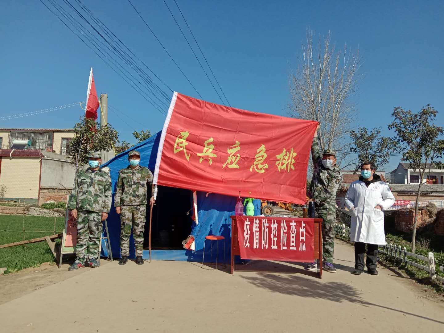 2月19日,在商水縣白寺鎮(zhèn)靳莊村疫情防控卡點(diǎn),幾個(gè)身著迷彩服的值班人員,格外顯眼。