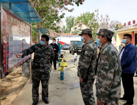 4月21日上午,老子故里春風(fēng)和煦,白楊寺村綠意盎然。在脫貧攻堅決戰(zhàn)決勝的關(guān)鍵時期,周口軍分區(qū)副司令員薛振喜到鹿邑縣張店鎮(zhèn)白楊寺村檢查指導(dǎo)縣人武部定點幫扶的脫貧工作??h委常委、縣人武部政委杜寶森,縣委常委、縣政府黨組成員張國慶,縣委黨校黨委書記、常務(wù)副校長鄭峰陪同檢查。