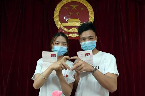 “你就是因為疫情防控推遲婚禮的那個警察吧!”5月20日上午,在鹿邑縣民政局婚姻登記大廳,工作人員看了身份證件后立即認(rèn)出了他們,專門為他們開通了“綠色通道”;同事們一起在執(zhí)勤的崗?fù)げ贾昧讼矚庋笱蟮摹霸苹槎Y”場地,與他們一起分享幸福的喜悅。