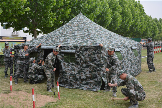 在這些民兵當中,擔負醫(yī)療救護的綜合勤務排更是不簡單。他們是來自周口長城醫(yī)院的醫(yī)護人員,在今年的抗疫戰(zhàn)中,他們充分發(fā)揮基層黨員民兵作用,無論白天黑夜,冒著雨雪嚴寒,在抗疫一線的卡點上都留下了他們迷彩身影。趙軍濤是來該醫(yī)院的醫(yī)護人員,同時也是一名退伍老兵,他說,新時代的強軍戰(zhàn)歌已經(jīng)奏響,要以此次集訓為契機,不斷強化練兵備戰(zhàn)的緊迫意識、危機意識,以飽滿的政治熱情投入到緊張的訓練中,用優(yōu)異成績?yōu)榇▍R區(qū)的后備力量建設增光添彩。