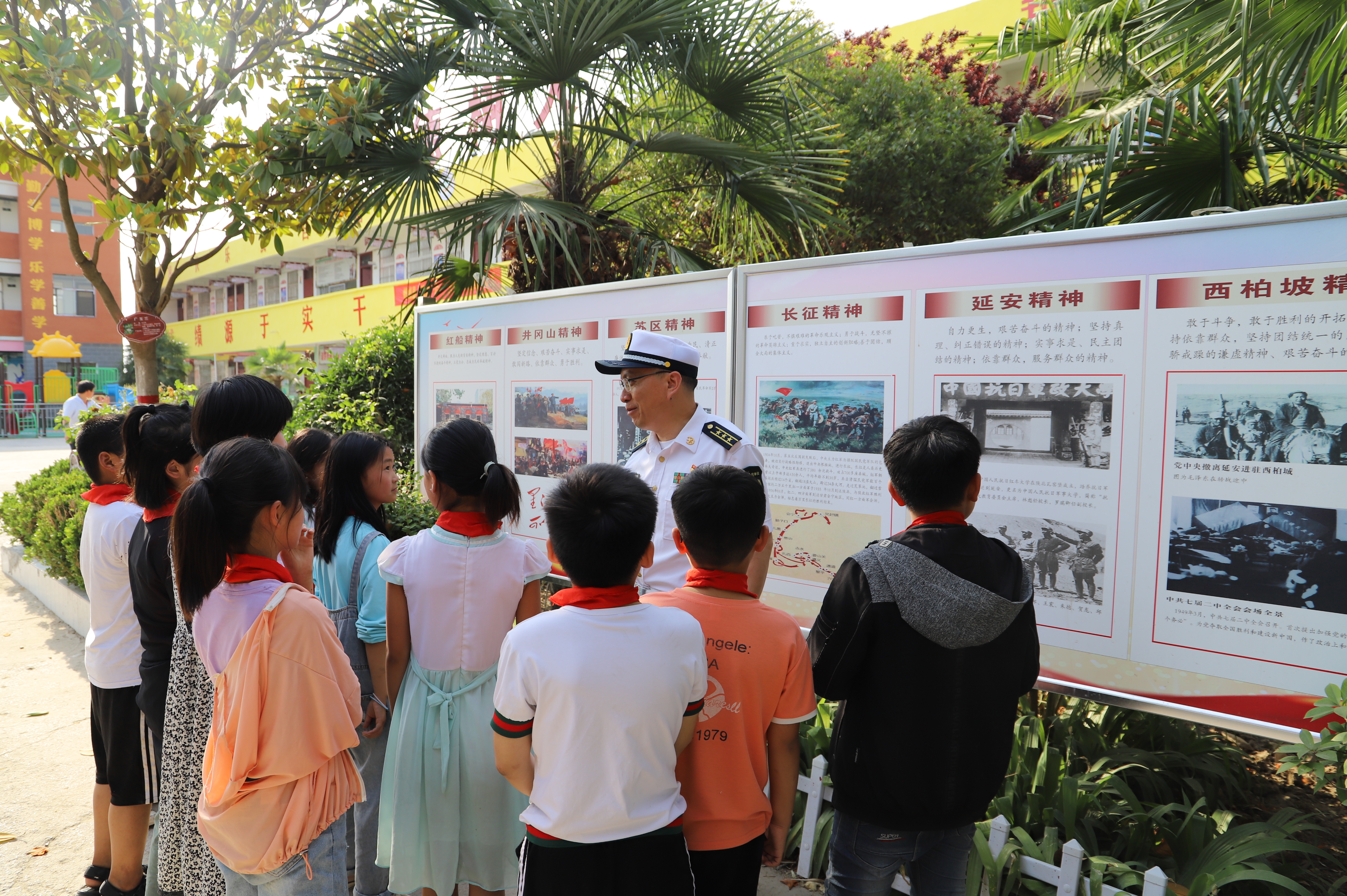 少年強(qiáng)則國(guó)強(qiáng)。眼下正是脫貧攻堅(jiān)決戰(zhàn)決勝的關(guān)鍵時(shí)刻,鄲城縣人民武裝部為了強(qiáng)化幫扶村脫貧致富的內(nèi)生動(dòng)力,全面斬?cái)唷案F根”、栽下“富苗”,該部斥資數(shù)十萬(wàn)元加強(qiáng)對(duì)東風(fēng)鄉(xiāng)大趙小學(xué)的幫扶力度,硬化、綠化、美化、亮化加紅色文化。該縣人武部部長(zhǎng)董連江、政委金仁旺經(jīng)常到學(xué)校講革命精神,讓少先隊(duì)員了解革命歷史、感受革命傳統(tǒng),增強(qiáng)砥礪前行的理想信念,不忘初心跟黨走,一顆紅心永向黨,將革命精神傳承下去并發(fā)揚(yáng)光大,讓紅色文化成果助力“中國(guó)夢(mèng)”的實(shí)現(xiàn)。圖為鄲城縣人民武裝部政委金仁旺向少先隊(duì)員講述革命精神。