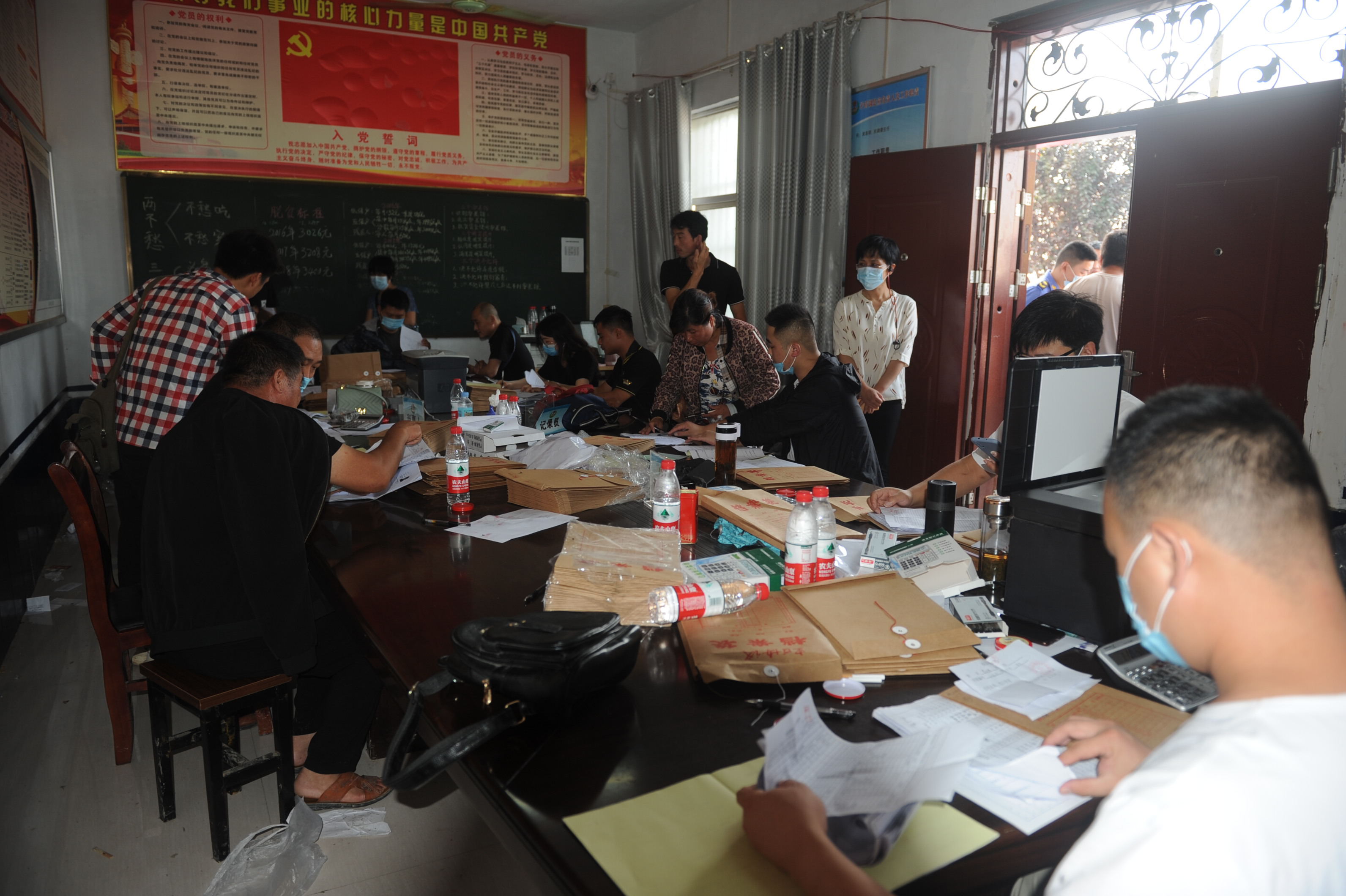 村室內,工作人員有的在忙著為群眾復印材料,有的在緊張地為群眾簽訂房屋拆除協議,大家都忙得不可開交。