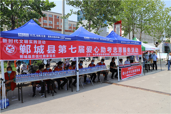 7月7日清晨,鄲城縣的志愿者們在考點(diǎn)外搭建“愛心助考志愿服務(wù)”站點(diǎn)。為考生免費(fèi)提供瓶裝水、防暑應(yīng)急藥品等用品,為等在考場外的家長們提供臨時(shí)休息場所、飲用水等服務(wù),在炎熱的夏日里為他們送上一份清涼和安心,為高考學(xué)子助考加油。同時(shí),志愿者維持考點(diǎn)周邊市容環(huán)境的整潔有序,對于大聲喧嘩等不文明行為及時(shí)勸阻;協(xié)助交警疏導(dǎo)交通,減少道路噪音對考試的影響,確保道路交通安全有序。